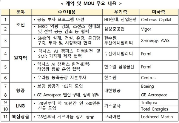 ์ธ์๋ ์๊ตญ์ ์์๋ ฅ, ํญ๊ณต, ์กํ์ฒ์ฐ๊ฐ์ค, ํต์ฌ๊ด๋ฌผ ๋ฑ 5๊ฐ ๋ถ์ผ์์ 11๊ฐ ๊ณ์ฝ๊ณผ ์