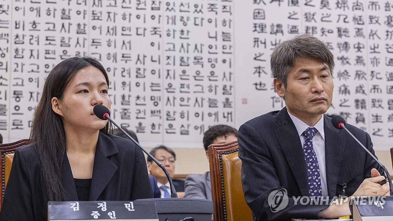 검찰 관봉권 띠지 유실 사건 관련 질의에 답하는 김정민 수사관(왼) | 연합뉴스