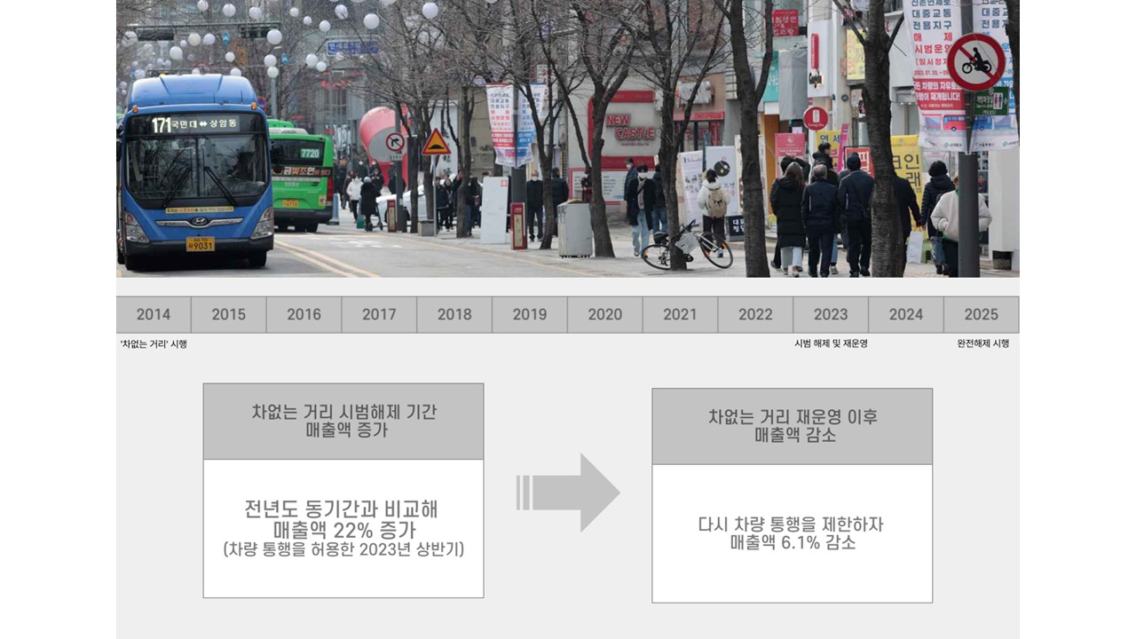 사실 차없는 거리를 완전히 시행하기 전인 2023년 상반기, 🏛️서울시는 차없는 거리를 시범적으로 해제한 적이 있어요. 👨🏫윤상혁 한국기술교육대 교수는 이 기간동안의 연세로 상권을 분석하였는데, 무려 📈전체 매출액이 22.0% 증가했다고 밝혔습니다. 또한 이후 차없는 거리를 다시 운영하자 📉매출액이 6.1% 하락하기도 했습니다. 서대문구는 이러한 통계를 바탕으로 일반 차량이 자주 드나들면 상권이 살아날 것이라 기대하고 있어요.🌱 물론, 실제로 차없는거리를 해제한 올해 1분기 상권 매출이 실제로는 줄어들었다는 것을 근거로 실효성에 대해 지적하는 목소리 역시 존재해요. |