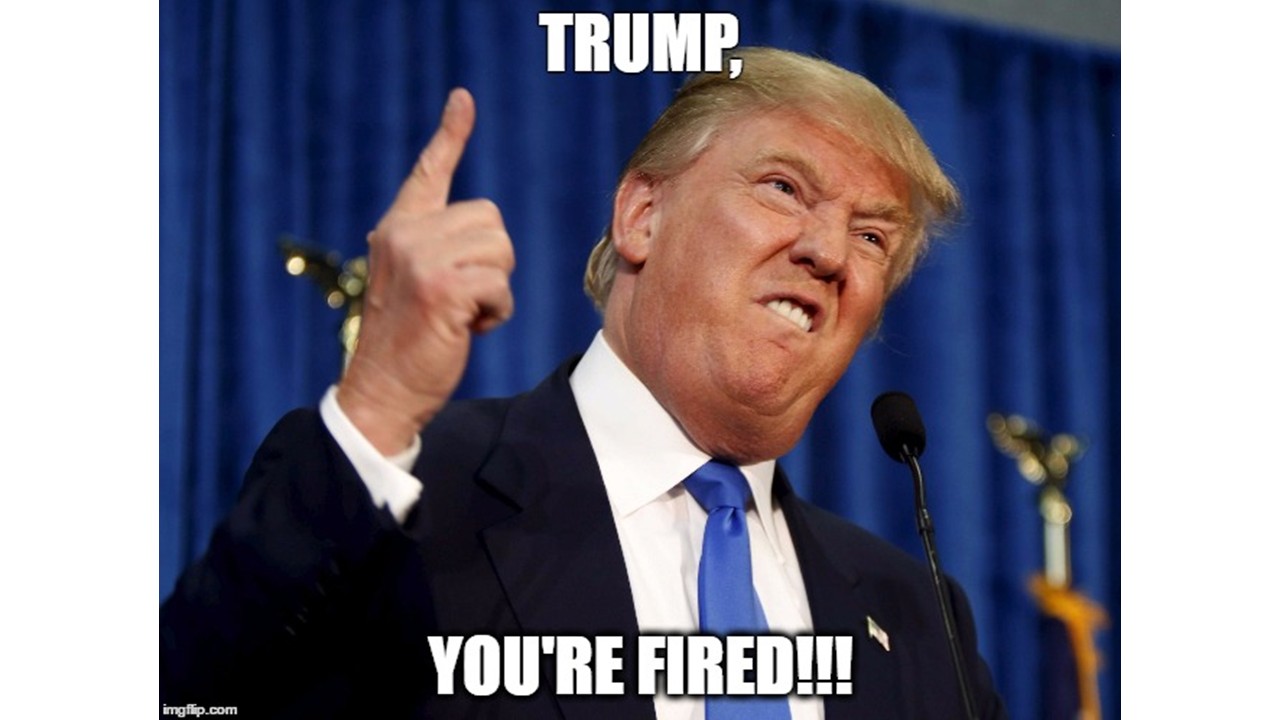 ํธ๋ผํ ๋ํต๋ น์ด ์งํํ๋ ๋ฏธ๊ตญ TV ํ๋ก๊ทธ๋จ The Apprentice์์ ๋์จ ์ ํ์ด | imgflip |